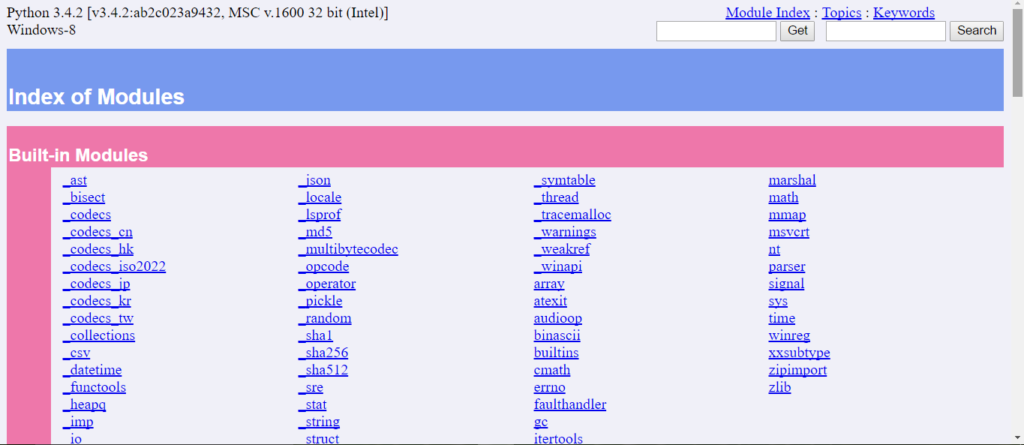 This looks rather familiar to output of the builtin function help(), doesn't it? Actually, the builtin function help() is in fact being provided by the PyDoc module.