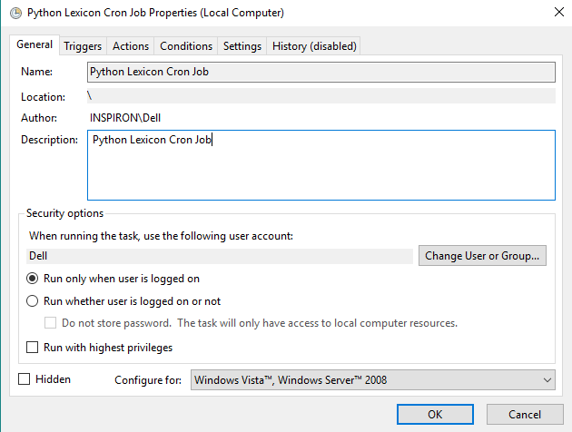 • In the General Tab of the newly opened dialog box, provide Name and Description of your task.